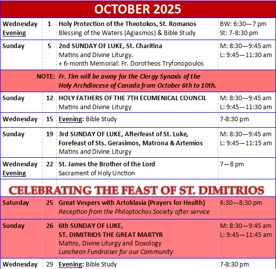 Sunday, September 28th - 1st Sunday of Luke, St. Chariton